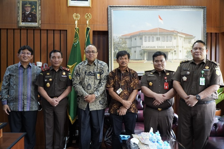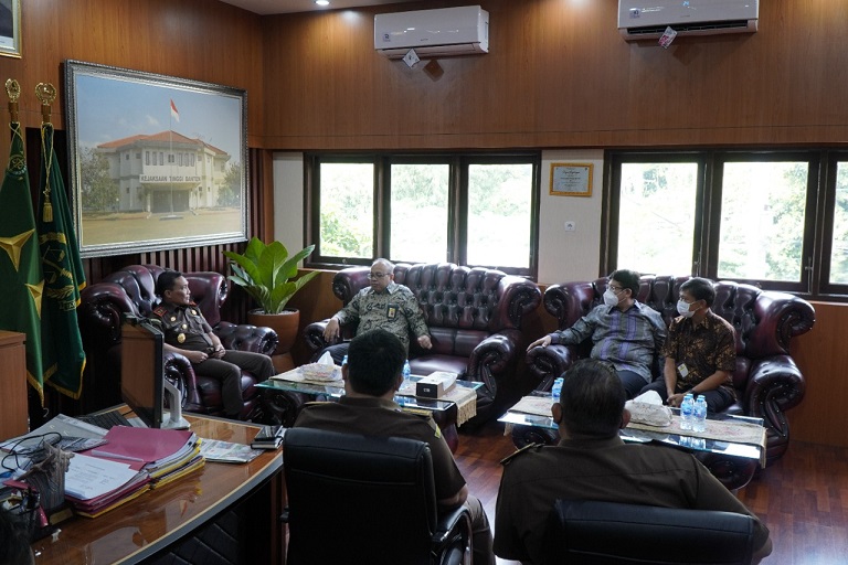 Kepala Kanwil DJP Banten Yoyok Satiotomo melakukan pertemuan dengan Kepala Kejaksaan Tinggi Banten Leonard Eben Ezer Simanjuntak di ruang kerja Kepala Kejaksaan Tinggi Banten, Kota Serang (Selasa, 19/04).