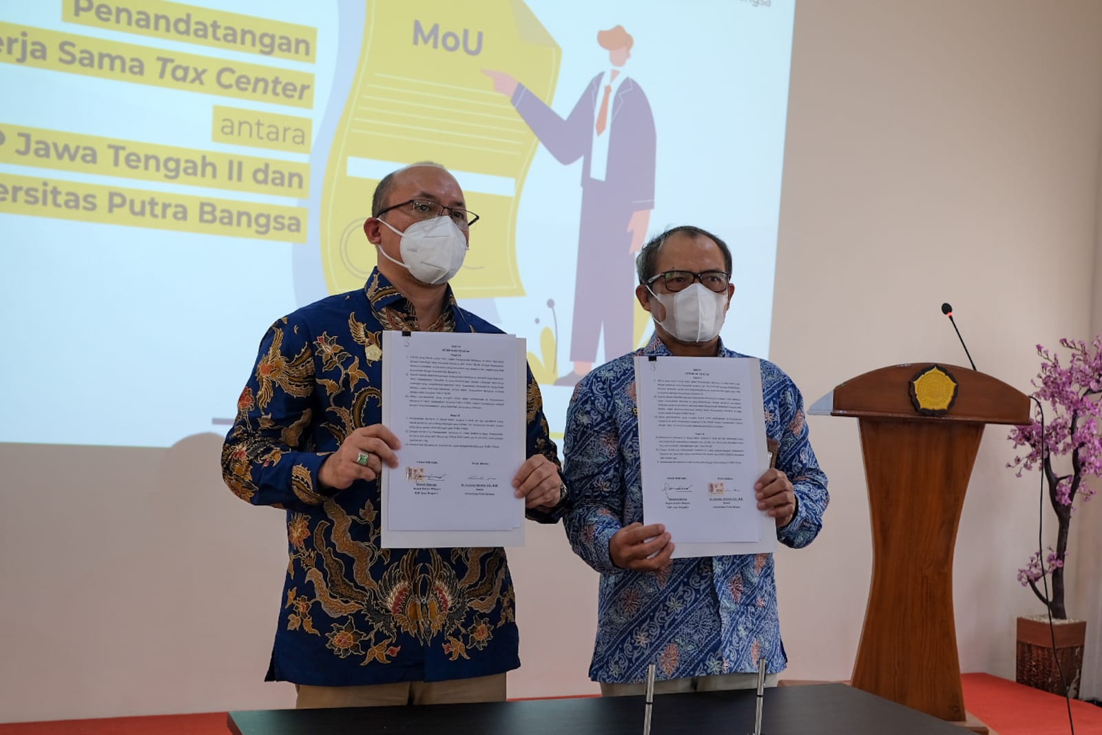 Penandatanganan ini dilaksanakan oleh kedua belah pihak dalam rangka memperpanjang kerja sama Tax Center UPB karena perubahan nomenklatur UPB. Penandatanganan dilakukan oleh Slamet Sutantyo selaku Kepala Kanwil DJP Jawa Tengah II dan Gunarso Wiwoho selaku Rektor UPB.