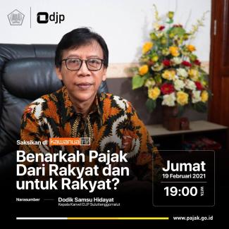 Acara yang dilaksanakan secara daring dengan mengangkat tema “Benarkah Pajak dari Rakyat dan Untuk Rakyat?” ini dikemas dalam bentuk obrolan santai dan berlangsung mulai pukul 19.00-20.00 WITA serta disiarkan secara langsung melalui kanal 53 UHF Kawanua TV dan aplikasi JPM Stream Kawanua TV.
