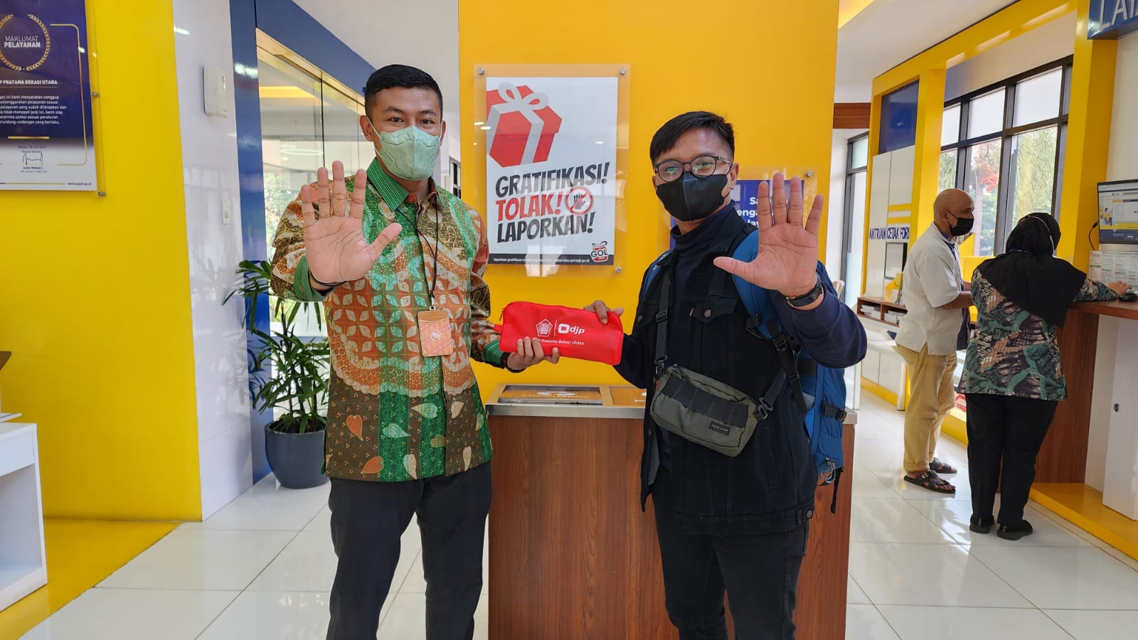 Kepala Seksi Pelayanan juga mendukung dengan menyampaikan secara langsung suvenir kepada wajib pajak yang sedang menunggu di Tempat Pelayanan Terpadu. Ini menjadi bagian penting dalam unsur membangun kepercayaan kepada Direktorat Jenderal Pajak agar menjadi institusi terbaik yang dipercaya oleh masyarakat luas.