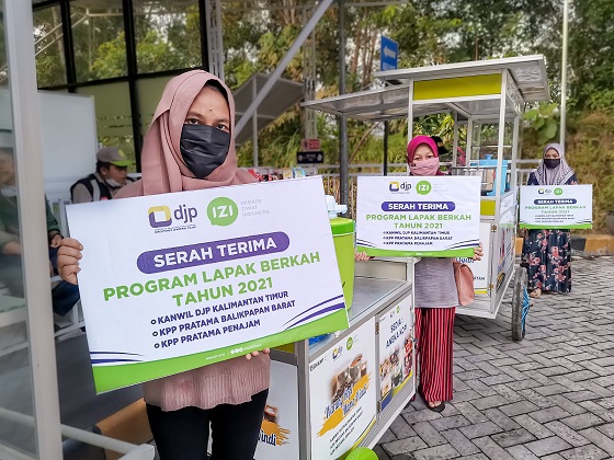 Bersama Inisiatif Zakat Indonesia (IZI) perwakilan Kalimantan Timur, Kantor Wilayah Direktorat Jenderal Pajak Kalimantan Timur dan Utara (Kanwil DJP Kaltimtara) melakukan penyerahan Lapak Berkah kepada tiga penerima manfaat yang merupakan Usaha Mikro, Kecil, dan Menengah (UMKM) dari kalangan Dhuafa Kota Balikpapan di depan Halaman Masjid As-Salam, Komplek Kanwil DJP Kaltimtara Kota Balikpapan (Kamis, 29/10).