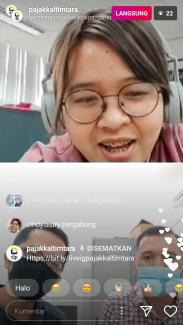 Kantor Wilayah Direktorat Jenderal Pajak Kalimantan Timur dan Utara (Kanwil DJP Kaltimtara) bekerja sama dengan Kantor Pelayanan Pajak Pratama Balikpapan Barat (KPP Pratama Balikpapan Barat) menggelar Kelas Pajak secara daring melalui Live Instagram @pajakkaltimtara dan @pajakbalikpapanbarat di Balikpapan (Kamis, 16/7).