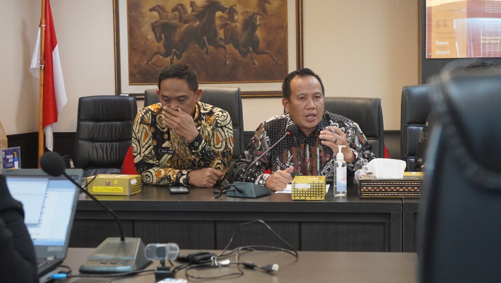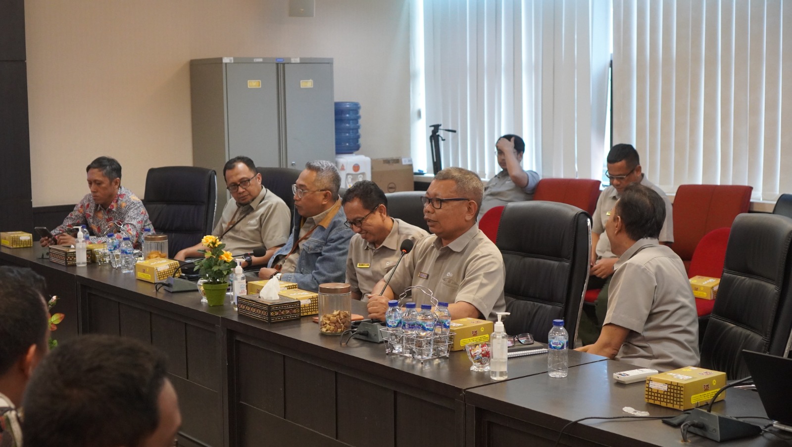Plt. Kepala Bidang (Kabid) Penyuluhan, Pelayanan, dan Hubungan Masyarakat (P2Humas) Alimuddin Lisaw; Kabid Data dan Pengawasan Potensi Perpajakan (DP3) Soebagio; Kabid Keberatan, Banding, dan Pengurangan (KBP) Hisbullah; dan Kepala Bagian (Kabag) Umum Muhammad Adnan Abdullah menerima kedatangan tim Kabupaten Luwu Timur yang terdiri dari Kepala Badan Pendapatan Daerah (Bapenda) Muhammad Said, S.E, M.M; Kabag Hukum Yerislin Wuala, S.H; Kabid Perencanaan dan Pengembangan Pendapatan Daerah Chaeruddin Arfah M., S.IP, M.M; Kabid PBB dan BPHTB Andi Muh. Reza, S.STP, M.A; Kepala Seksi (Kasi) Penagihan Agus Abdullah, S.E, M.Si; Analis Hukum Zulkifli, S.H; dan Kepala BPKAD Dr. Ramadhan Pirade, S.E., M.M.