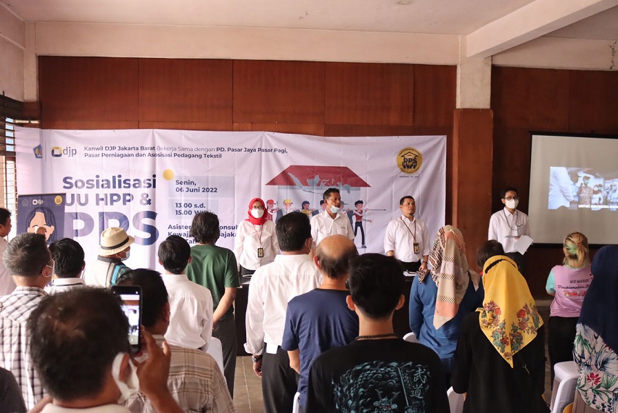 PPS akan segera berakhir pada tanggal 30 Juni 2022. Agar masyarakat dan wajib pajak tidak ketinggalan program ini, Kanwil DJP Jakarta Barat terus gencar menggelar sosialisasi Undang-Undang Harmonisasi Peraturan Perpajakan (UU HPP) dan PPS terutama di sentra-sentra ekonomi di wilayah Jakarta Barat, salah satunya di Pasar Pagi Lama, Tambora. Sosialisasi ditujukan bagi para pemilik kios dan pedagang penyewa di kios di lokasi PD Pasar Jaya serta anggota Asosiasi Pedagang Tekstil.