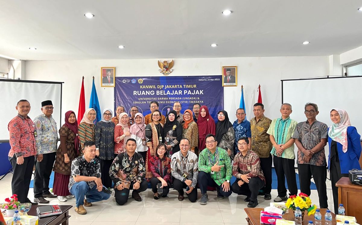 Kantor Wilayah DJP Jakarta Timur bekerja sama dengan Tax Center Universitas Darma Persada (Unsada) dan STIE Swadaya menyelenggarakan kegiatan Ruang Belajar Pajak yang ditujukan khususnya kepada para dosen melalui pembelajaran secara bertahap yang dilakukan secara rutin dan terjadwal sebanyak lima kali pertemuan di Aula STIE Swadaya (Selasa, 23/5).