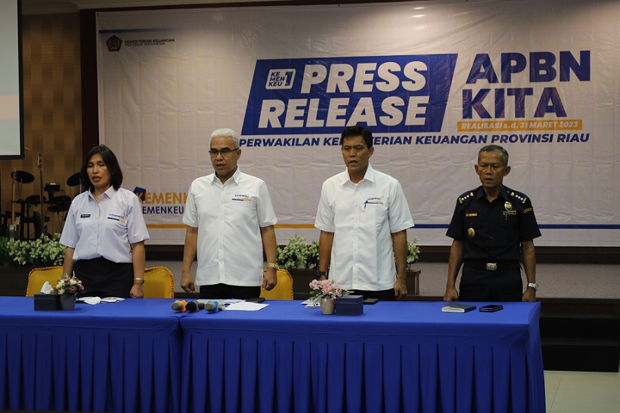 Kepala Kantor Wilayah Direktorat Jenderal Pajak (Kanwil DJP) Riau Ahmad Djamhari memberikan pernyataan capaian Kanwil DJP Riau yang berhasil selama triwulan I 2023 di Ruang Kepala Kanwil DJP Riau (Senin, 17/4). Ahmad Djamhari berujar bahwa Kanwil DJP Riau berhasil mengumpulkan penerimaan pajak sebesar Rp4,9 T atau 22,25% dari target Rp22,13 T dan tumbuh 39,03% jika dibandingkan dengan tahun sebelumnya. Kontribusi terbesar datang dari sektor pajak Pajak Pertambahan Nilai Dalam Negeri (PPN DN), khususnya di Sektor Pertanian dan Perdagangan.