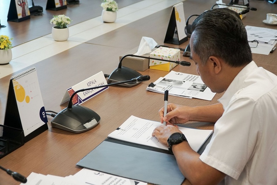 Kepala Kanwil DJP Sulawesi Selatan, Barat, dan Tenggara (Sulselbartra) Wansepta Nirwanda melakukan penandatanganan MoU pembentukan Tax Center bersama perwakilan Universitas Kristen Indonesia (UKI) Paulus Makassar secara webinar dengan memanfaatkan aplikasi zoom meeting di Kota Makassar (Kamis, 9/7) .