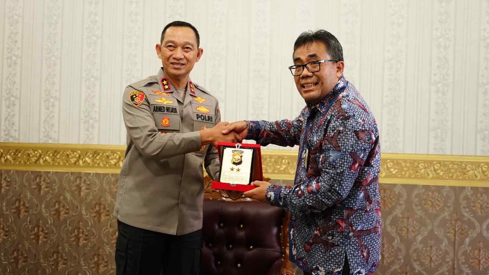 Kepala Kantor Wilayah (Kanwil) Direktorat Jenderal Pajak (DJP) Bengkulu dan Lampung Tri Bowo didampingi Kepala Bidang Penyuluhan, Pelayanan dan Hubungan Masyarakat (P2Humas) Sugiri Tejanagara, Kepala Kantor Pelayanan Pajak (KPP) Pratama Bengkulu Satu, Nanik Triwahyuningsih, Kepala Kantor Pelayanan Pajak (KPP) Pratama Bengkulu Dua Indera Gunawan, dan jajaran melakukan kunjungan ke Kepala Kepolisian Daerah Bengkulu Irjen Pol Armed Wijaya yang bertempat di Ruang Kepala Kantor Kepolisian Daerah Bengkulu, Kota Bengkulu (Selasa, 21/2).
