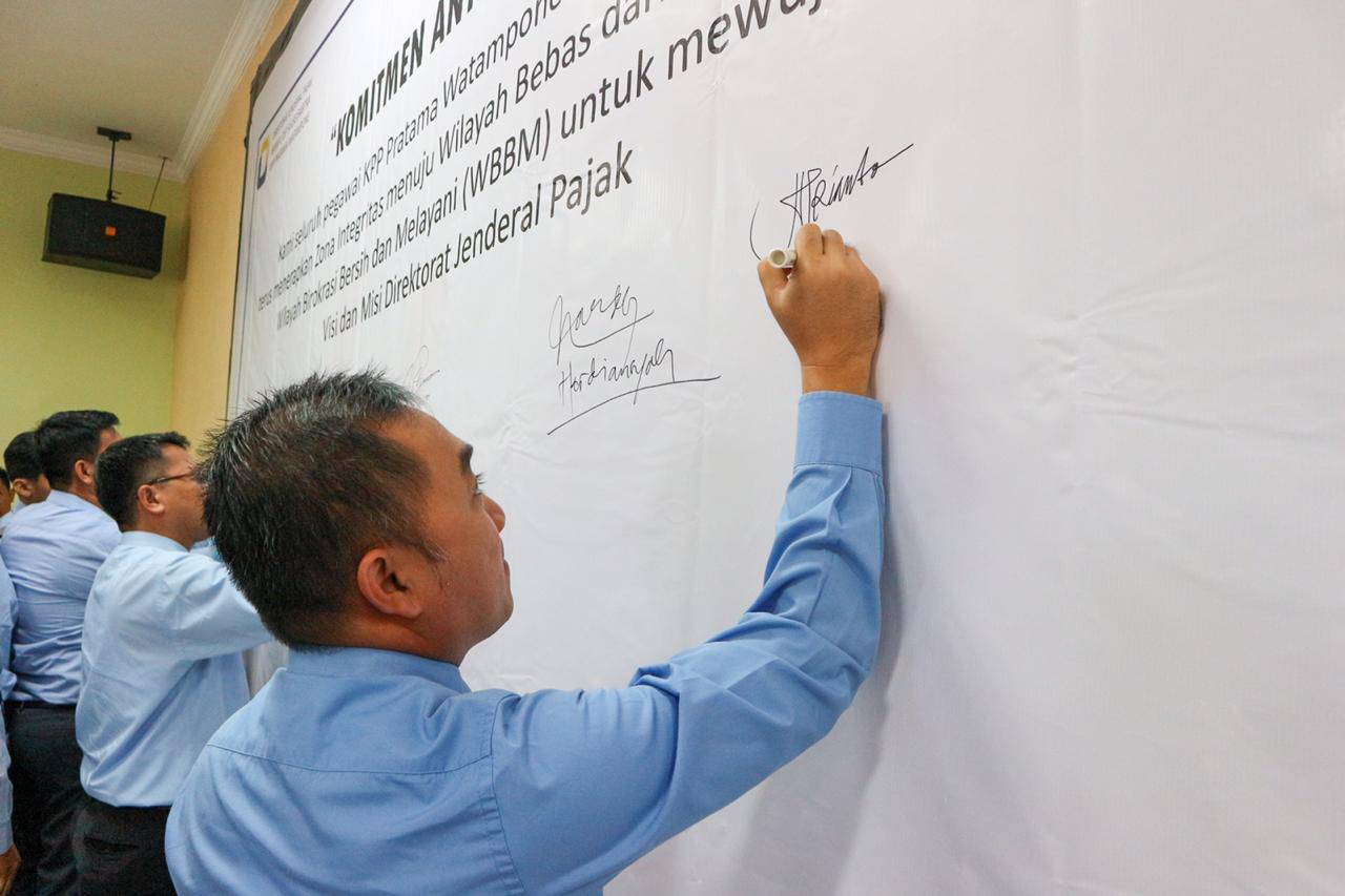Acara inti pada kegiatan ini yaitu pemaparan materi, diskusi, dan sharing session. Acara ditutup dengan penandatangan Komitmen Antikorupsi oleh seluruh pegawai KPP Pratama Watampone.