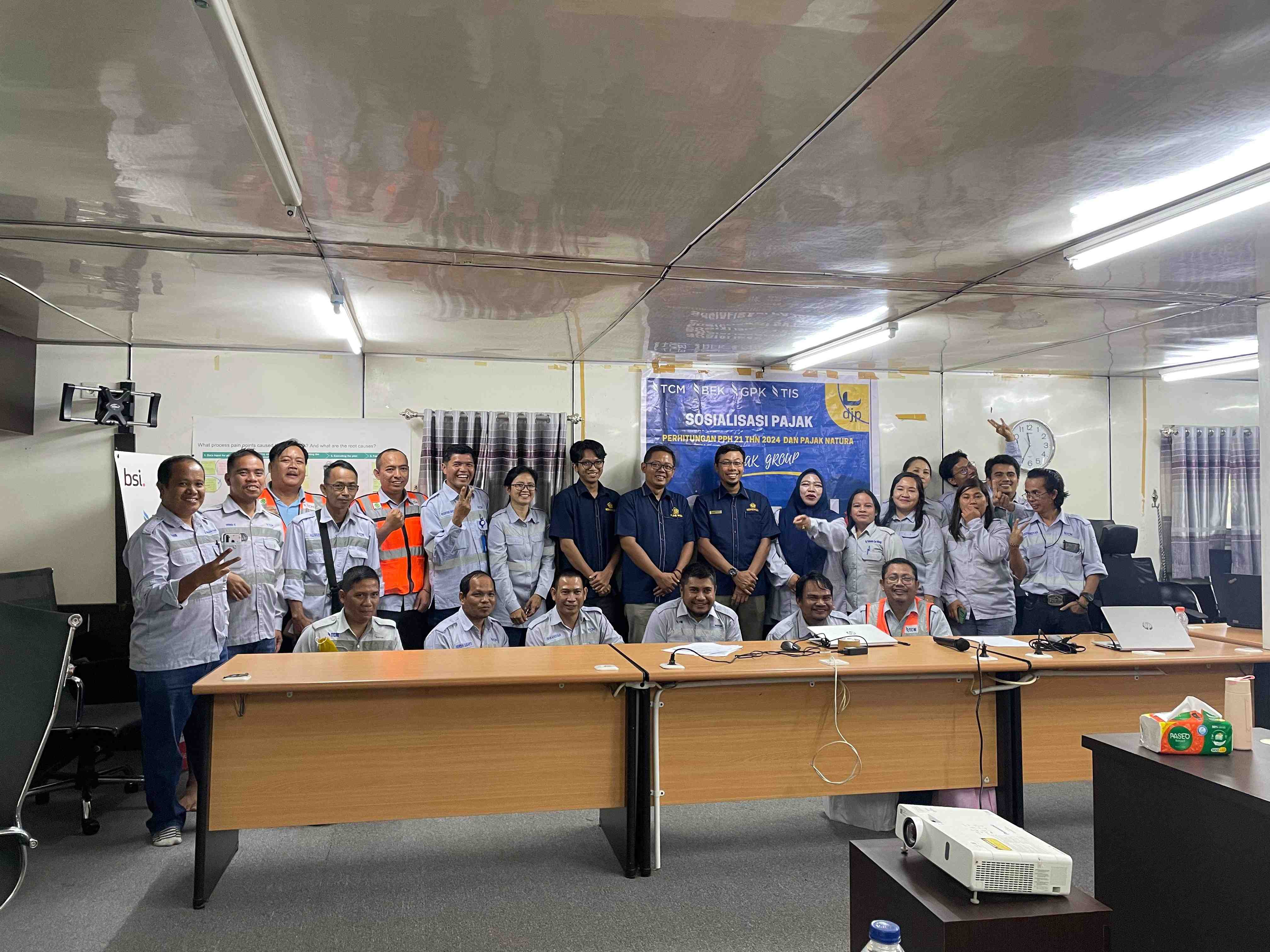 Kantor Pelayanan, Penyuluhan, dan Konsultasi Perpajakan (KP2KP) Sendawar diundang dalam acara Sosialisasi Peraturan Pemerintah (PP) Nomor 58 Tahun 2023 tentang Tarif Pemotongan Pajak Penghasilan Pasal 21 atas Penghasilan Sehubungan dengan Pekerjaan, Jasa, atau Kegiatan Wajib Pajak Orang Pribadi oleh PT Trubaindo Coal Mining (TCM) di Site Adong, Kab. Kutai Barat (Rabu, 31/1).