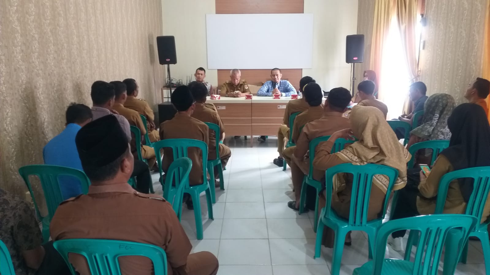 Kantor Pelayanan, Penyuluhan dan Konsultasi Perpajakan (KP2KP) Menggala bersama dengan Seksi Pengawasan VI Kantor Pelayanan Pajak (KPP) Pratama Kotabumi mengunjungi Aula Kecamatan Way Serdang Kabupaten Mesuji untuk menjadi narasumber dalam kegiatan monitoring dan evaluasi kewajiban perpajakan atas Dana Desa (Selasa, 9/5). Kegiatan monitoring dan evaluasi ini sendiri dihadiri oleh perwakilan setiap desa di Kecamatan Way Serdang sebanyak dua puluh desa.