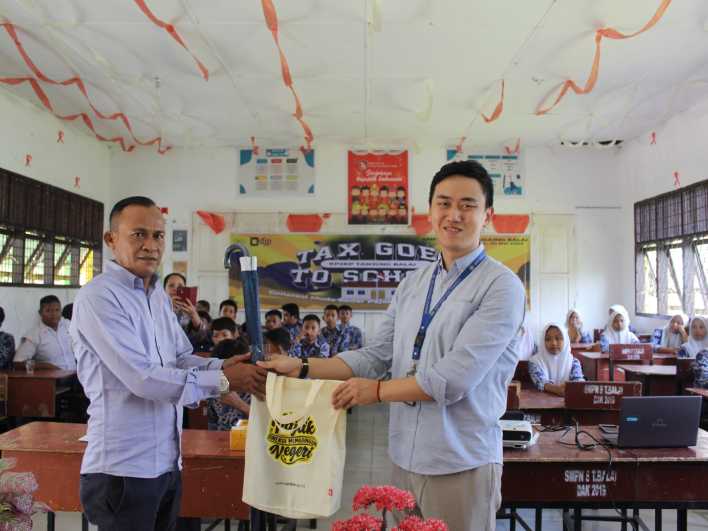 Kantor Pelayanan Pajak (KPP) Pratama Kisaran bersama Kantor Pelayanan, Penyuluhan, dan Konsultasi Perpajakan (KP2KP) Tanjung Balai melaksanakan kegiatan Tax Goes To School (TGTS) bersama Sekolah Menengah Pertama (SMP) Negeri 8 Tanjung Balai di SMP Negeri 8 Tanjung Balai, Kapias Pulau Buaya, Kota Tanjung Balai (Kamis, 30/5).
