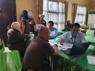 Bertempat di Aula Kejaksaan Negeri Wonogiri, Kantor Pelayanan Pajak (KPP) Pratama Sukoharjo bersama Kantor Pelayanan, Penyuluhan, dan Konsultasi Perpajakan (KP2KP) Wonogiri mengasistensi 40 pegawai Kejaksaan Negeri Wonogiri melakukan pemadanan Nomor Induk Kependudukan (Rabu, 25/1).