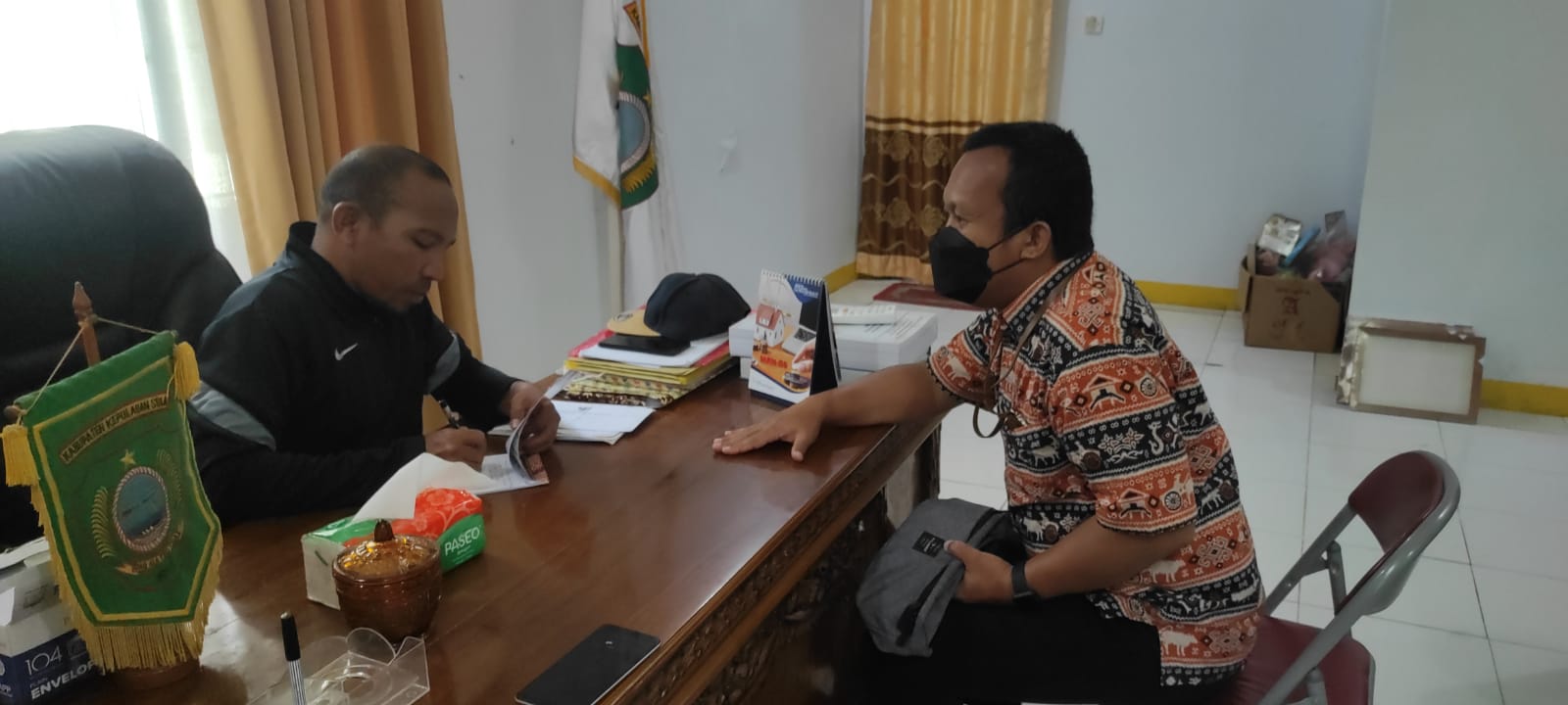 Kepala Kantor Pelayanan Penyuluhan dan Konsultasi Perpajakan (KP2KP) Sanana Indrasakti melakukan kunjungan kerja ke Dinas Pendidikan Kabupaten Kepulauan Sula (Kamis, 10/3). Tujuan kunjungan kerja ini adalah untuk melakukan koordinasi terkait pelaporan Surat Pemberitahuan (SPT) Tahunan Pajak Penghasilan (PPh) Orang Pribadi di Dinas Pendidikan Kabupaten Kepulauan Sula.