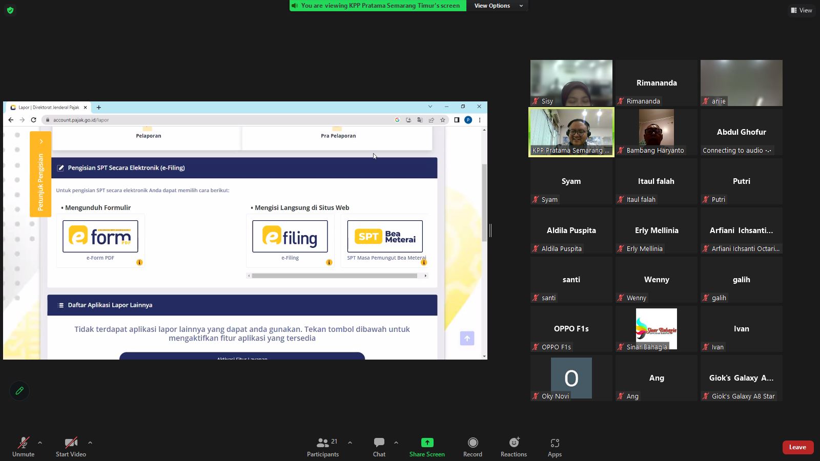 Kelas pajak dimulai pukul 09.00 hingga pukul 11.00 WIB diikuti oleh 21 peserta dengan narasumber Meilana selaku penyuluh pajak KPP Pratama Semarang Timur.