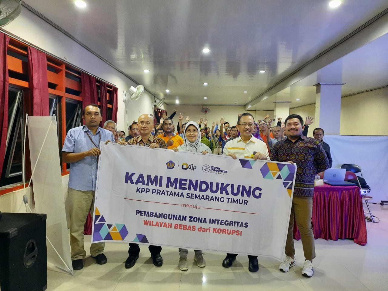 Kepala Kantor Pelayanan Pajak (KPP) Pratama Semarang Timur Pestamen Situmorang beserta tim melakukan kunjungan ke Kantor Kelurahan Sarirejo Kecamatan Semarang Timur guna melakukan sosialisasi dan permohonan dukungan terkait pelaksanaan program Zona Integritas-Wilayah Bersih dari Korupsi (ZI-WBK) yang telah dicanangkan oleh KPP Pratama Semarang Timur, Semarang (Kamis, 9/2).