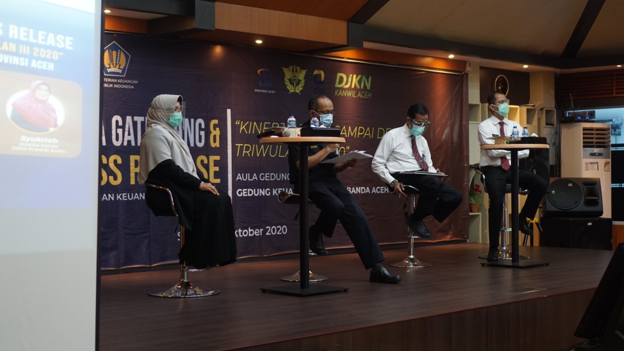 Kegiatan dengan tema "Kinerja APBN sampai dengan Triwulan III Tahun 2020" ini diikuti oleh awak media di wilayah Provinsi Aceh. Dengan narasumber Kepala Kanwil BC Aceh Safuadi selaku Kepala Perwakilan Kementerian, Kepala Kanwil DJP Aceh Tarmizi, Kepala Kanwil DJPB Aceh Syariadi, dan Kepala Kanwil DJKN Aceh Syukriah.