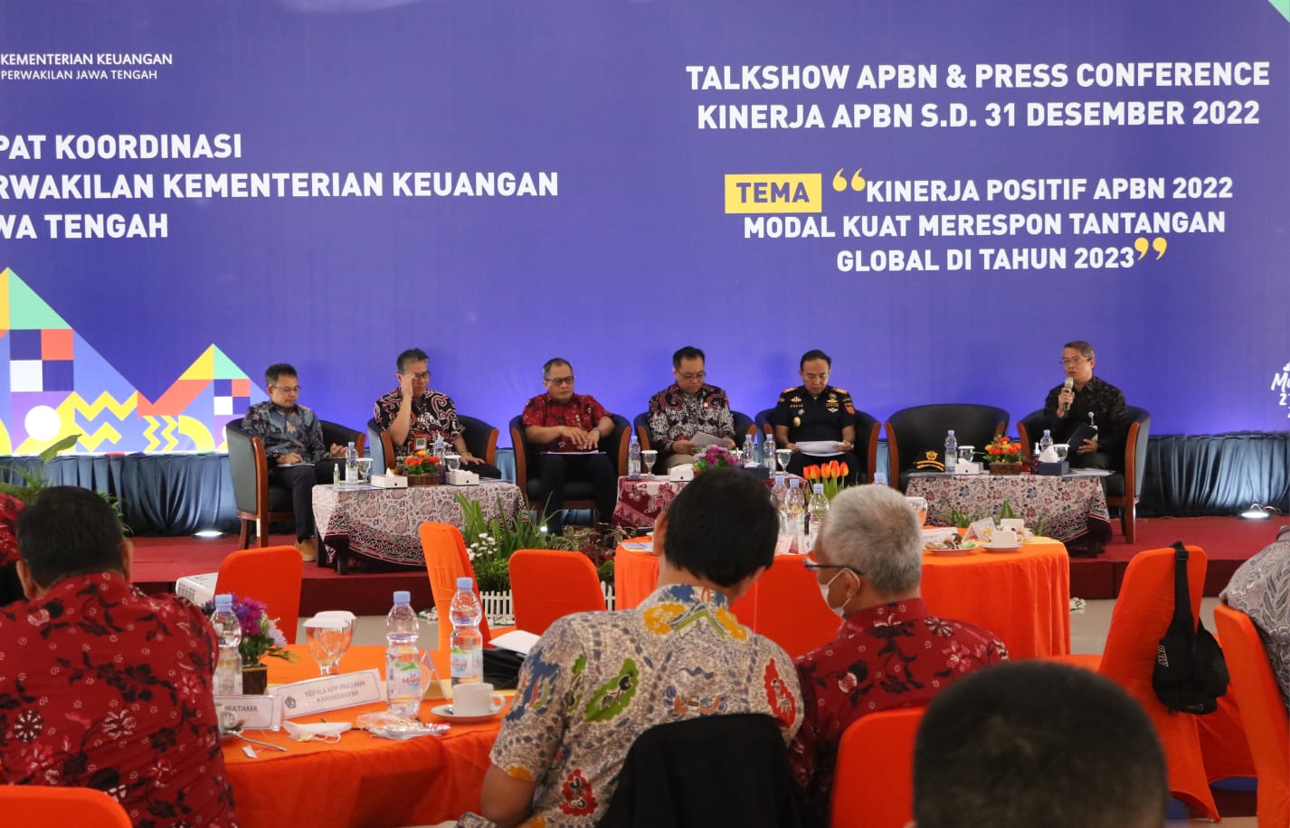 Perwakilan Kementerian Keuangan Jawa Tengah mengadakan kegiatan Talkshow dan Press Conference Kinerja Anggaran Pendapatan Belanja Negara (APBN) sampai dengan 31 Desember 2022 di Balai Diklat Kepemimpinan, Magelang (Jumat, 27/1). Kegiatan ini dihadiri oleh beberapa pejabat eselon II dan eselon III di Kementerian Keuangan wilayah Jawa Tengah.