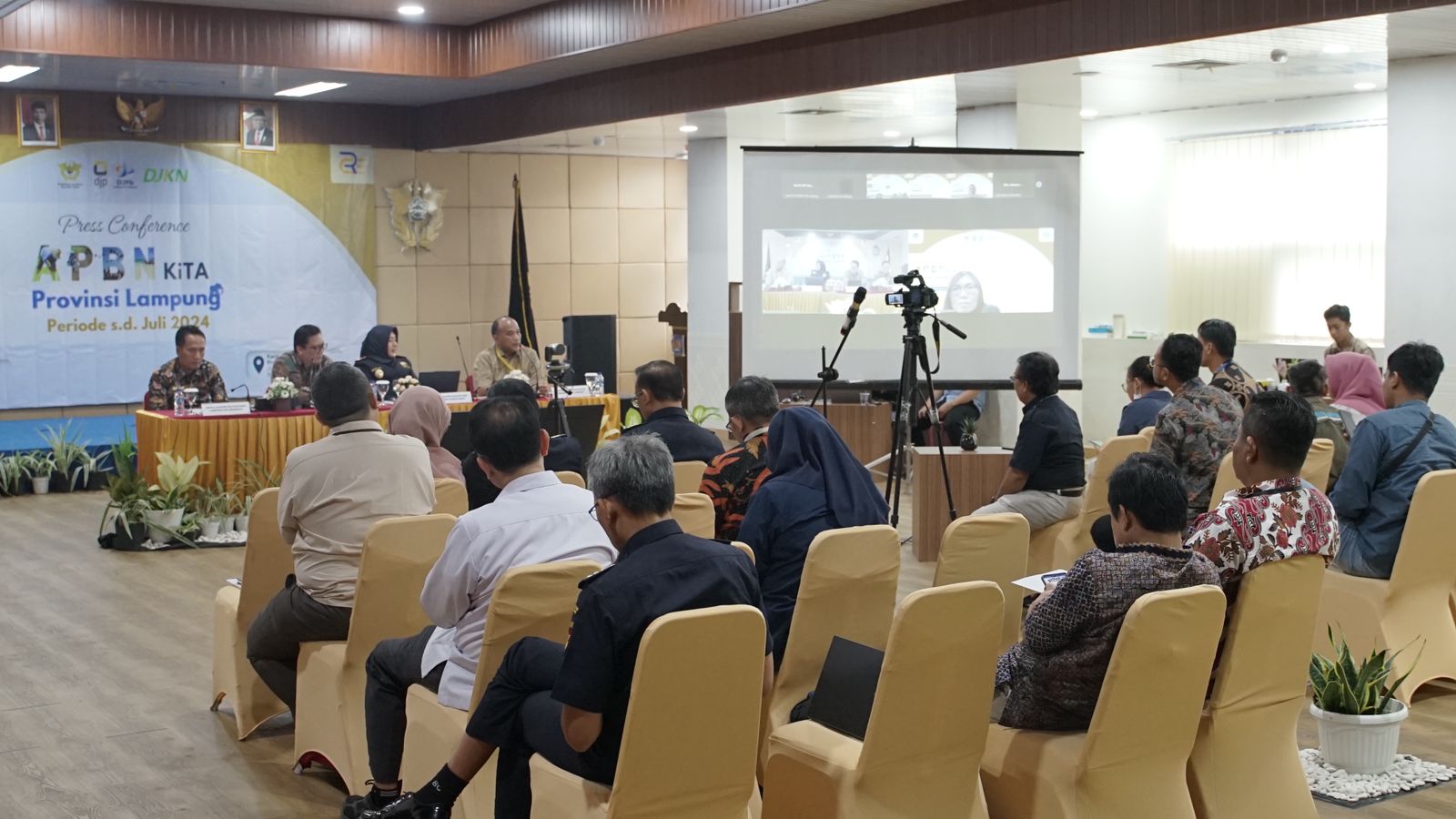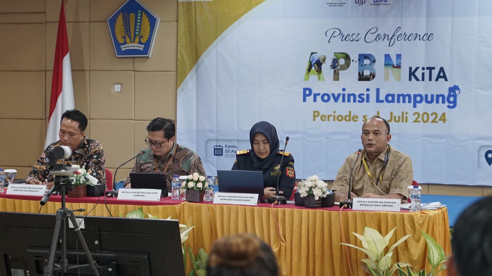 Perwakilan Kementerian Keuangan (Kemenkeu) Provinsi Lampung mengadakan kegiatan Press Conference Kinerja Anggaran Pendapatan Belanja Negara (APBN) sampai dengan 31 Juli 2024 di Kantor Wilayah (Kanwil) Direktorat Jenderal Bea dan Cukai (DJBC) Sumatera Bagian Barat, Bandar Lampung (Kamis, 22/8).
