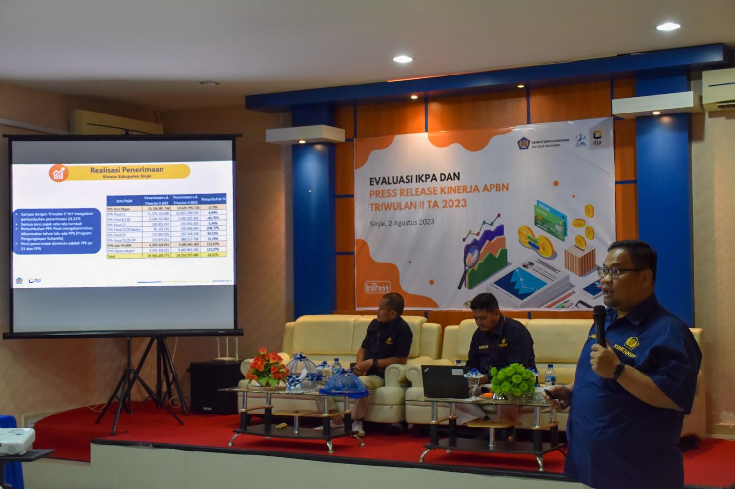 Kantor Pelayanan Pajak (KPP) Pratama Bulukumba bersama Kantor Pelayanan Perbendaharaan Negara (KPPN) Sinjai melaksanakan kegiatan evaluasi pelaksanaan Indikator Kinerja Pelaksanaan Anggaran (IKPA) dan Press Release Kinerja Anggaran Pendapatan dan Belanja Negara (APBN) Semester I Tahun 2023 yang bertempat di aula KPPN Sinjai, Sinjai (Rabu, 2/8).