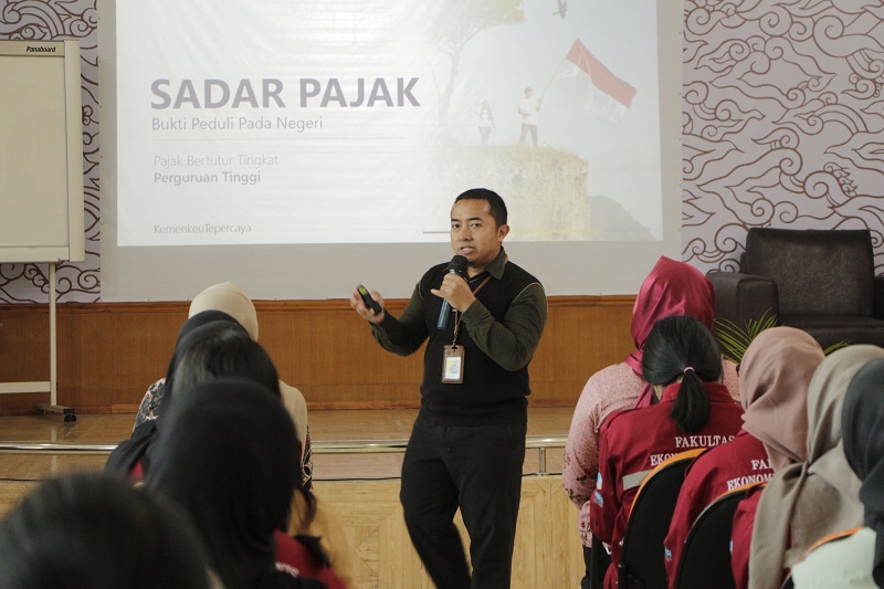 Penyuluh Pajak Cecep Septian menjadi narasumber dalam kegiatan ini. Materi yang disampaikan Cecep dimulai dari peran pajak bagi pembangunan negeri hingga tata cara pendaftaran NPWP, serta pengetahuan dasar perpajakan lainnya yang akan dibutuhkan para mahasiswa ketika sudah mulai bekerja.