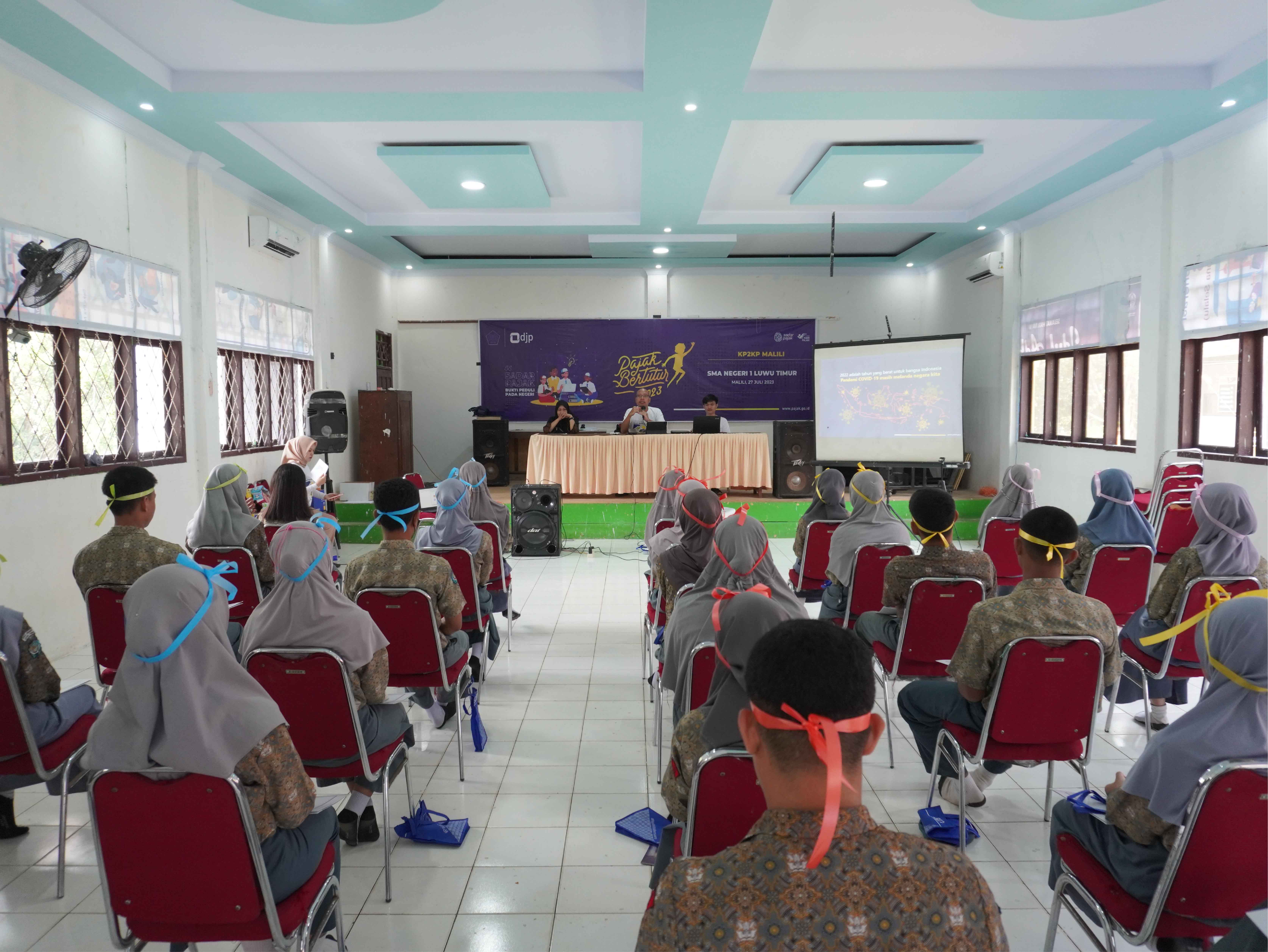 Kantor Pelayanan, Penyuluhan, dan Konsultasi Perpajakan (KP2KP) Malili mengadakan kegiatan Pajak Bertutur yang bertempat di SMA Negeri 1 Luwu Timur, Kab. Luwu Timur (Kamis, 27/7).