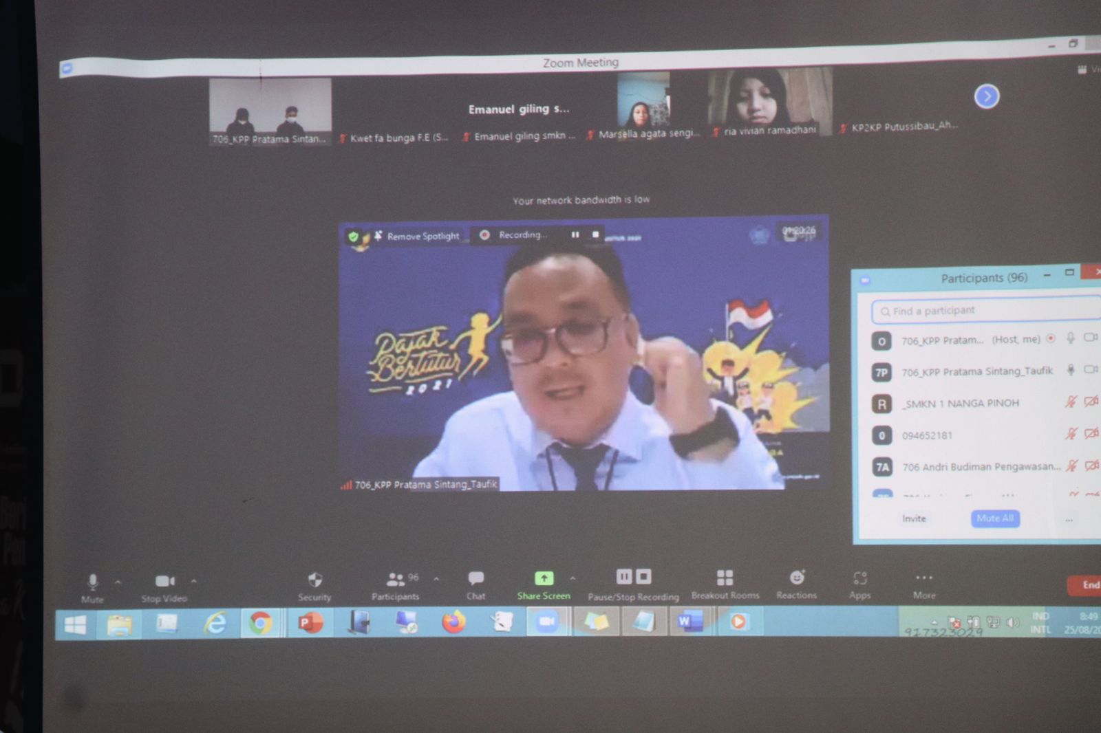 "Pajak bertutur ini merupakan program rutin tahunan yang diselenggarakan oleh Direktorat Jenderal Pajak secara serentak dari Sabang sampai Merauke sebagai bagian dari program inklusi kesadaran pajak dalam pendidikan. Kegiatan ini sudah inisiasi sejak tahun 2017 dengan harapannya adalah kita semua dapat menciptakan generasi muda yang sadar pajak paham akan pentingnya pajak dalam pembangunan nasional," ungkap Kepala Kantor Pelayanan Pajak (KPP) Pratama Sintang Taufik dalam sambutannya pada acara Pajak Bertutur yang dilaksanakan secara daring di Aula KPP Pratama Sintang, Sintang (Rabu, 25/8).