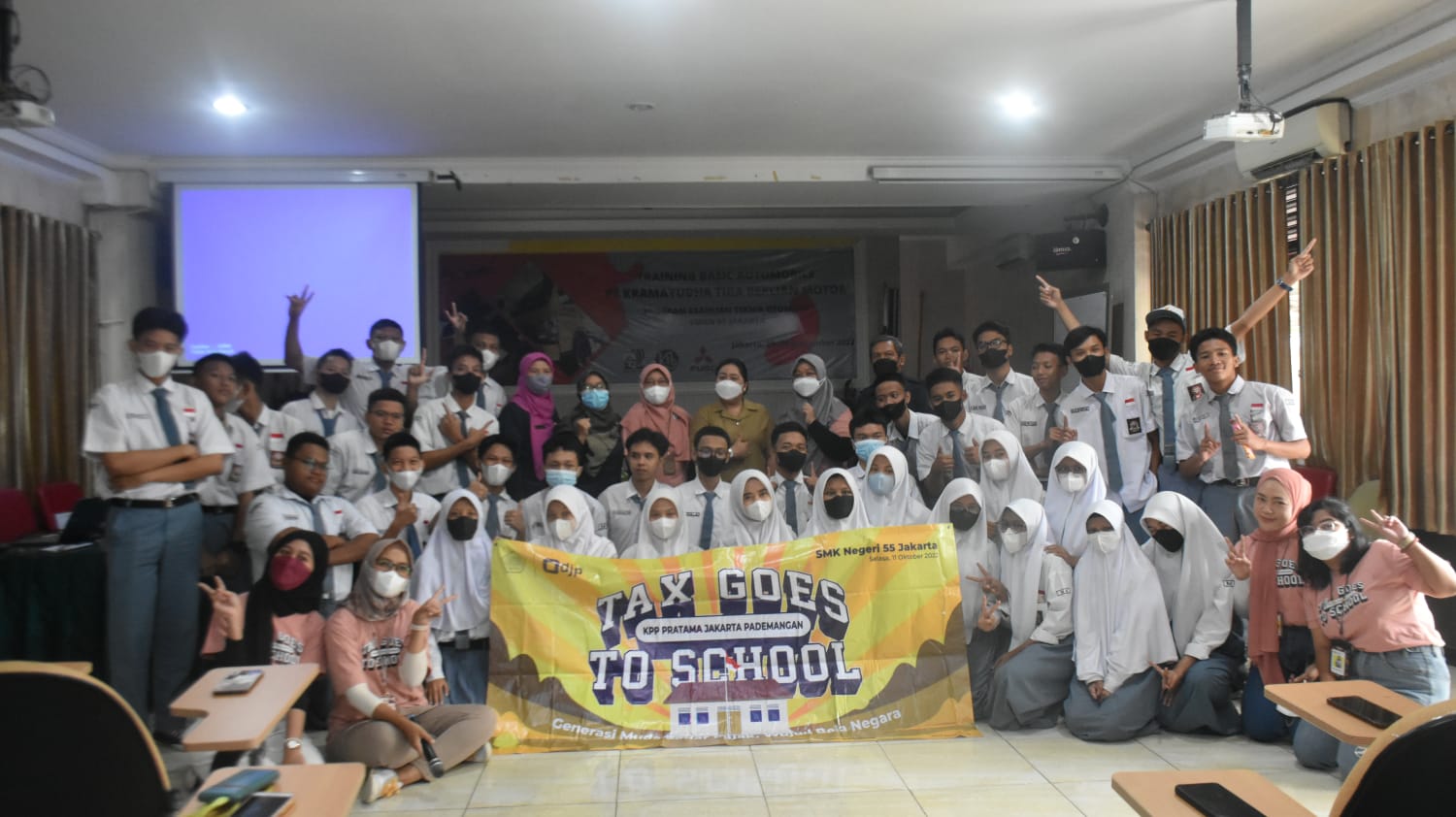 Kantor Pelayanan Pajak (KPP) Pratama Jakarta Pademangan menyelenggarakan Tax Goes To School (TGTS) di Aula SMK Negeri 55 Jakarta (Rabu, 11/10). Kegiatan dihadiri 35 siswa jurusan multimedia.