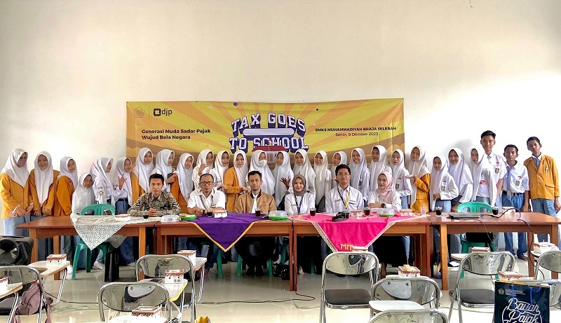 Kantor Pelayanan Pajak (KPP) Pratama Metro bersama Kantor Pelayanan, Penyuluhan, dan Konsultasi Perpajakan (KP2KP) Sukadana menyelenggarakan agenda tahunan Tax Goes To School (TGTS) 2023 di Sekolah Menengah Kejuruan (SMK) Muhammadiyah Braja Selebah, Lampung Timur , Provinsi Lampung (Senin, 9/10). Kegiatan ini diikuti oleh 34 siswa-siswi yang terdiri dari gabungan kelas 10, 11 dan 12 Jurusan Akuntansi.