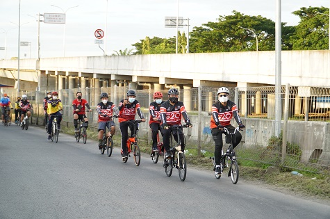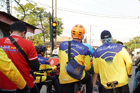 Kepala Kanwil DJP Sulawesi Selatan, Barat, dan Tenggara (Sulselbartra) Arridel Mindra bersama Komunitas Sepeda Pajak (Kopaja) Kanwil DJP Sulselbartra mempromosikan agenda Presidensi G20 dengan bersepeda menggunakan atribut G20 (Jumat, 11/3). Kegiatan gowes ini dilakukan di ruas jalan protokol di wilayah Kota Makassar.