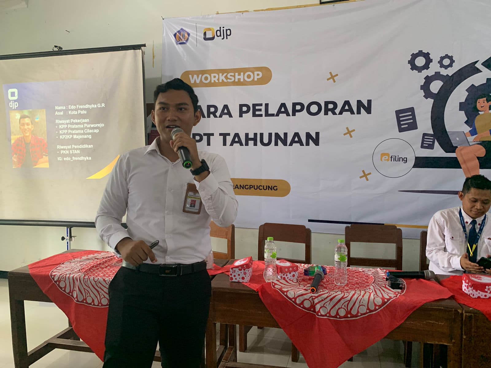 Materi utama terkait pelaporan SPT Tahunan disampaikan oleh Edo Frendhyka Gilang Ramadhan. Tak hanya menyampaikan materi, Edo juga mengajak siswa dan siswi untuk mencoba dan praktek untuk membuat SPT Tahunan. Akhir sesi ditutup dengan penyampaian pertanyaan oleh peserta. Edo berharap setelah kegiatan workshop ini selesai, siswa/i dapat mengetahui tujuan dari pelaporan SPT Tahunan, serta memahami tata cara pelaporan SPT Tahunan dari awal hingga selesai.