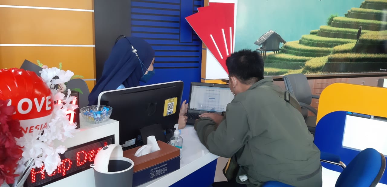 Arum kemudian mempersilakan wajib pajak untuk membuka laptopnya sembari menjelaskan persyaratan permintaan Nomor Seri Faktur Pajak (NSFP). “Syarat meminta NSFP itu harus lapor SPT Masa PPN untuk tiga bulan terakhir ya Pak,” jelas Arum kepada wajib pajak.