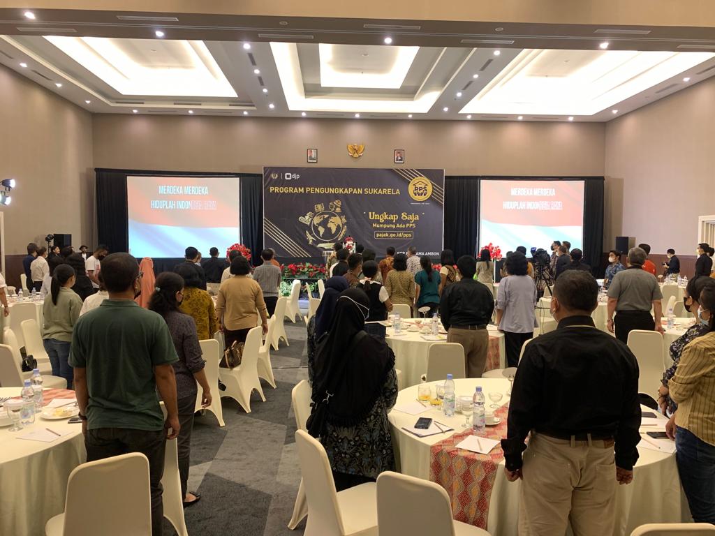 Kantor Pelayanan Pajak (KPP) Pratama Ambon dan Kantor Wilayah Direktorat Jenderal Pajak (Kanwil DJP) Papua, Papua Barat, dan Maluku menyelenggarakan kegiatan gala dinner sekaligus Sosialisasi Program Pengungkapan Sukarela (PPS) di Hotel Santika Kota Ambon, Provinsi Maluku (Kamis, 19/5). Kegiatan ini dihadiri oleh wajib pajak prominen yang terdaftar di KPP Pratama Ambon.