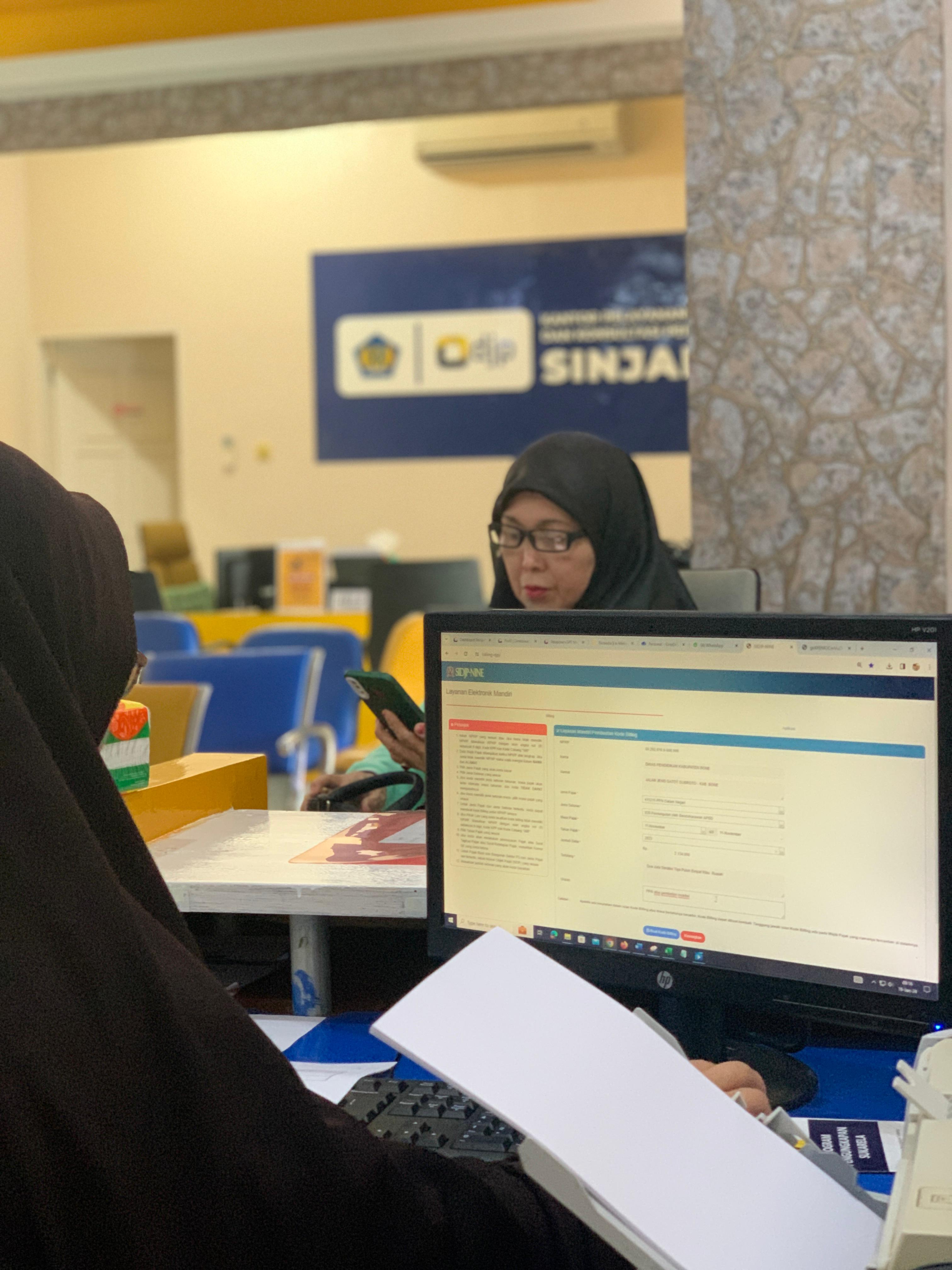 Kantor Pelayanan, Penyuluhan, dan Konsultasi Perpajakan (KP2KP) Sinjai memberikan pelayanan di Tempat Pelayanan Terpadu (TPT) kepada salah satu Wajib Pajak Instansi Pemerintah (Senin, 6/5). Wajib pajak yang dimaksud yakni bendahara salah satu Sekolah Dasar Negeri di Kabupaten Sinjai. Bendahara tersebut menanyakan kewajiban pembuatan kode billing sebagai syarat penyetoran pajak. Kode billing yang dimaksud yakni terkait dengan pembayaran Pajak Penghasilan (PPh) dan Pajak Pertambahan Nilai (PPN) atas belanja barang yang telah dilakukan instansi terkait.