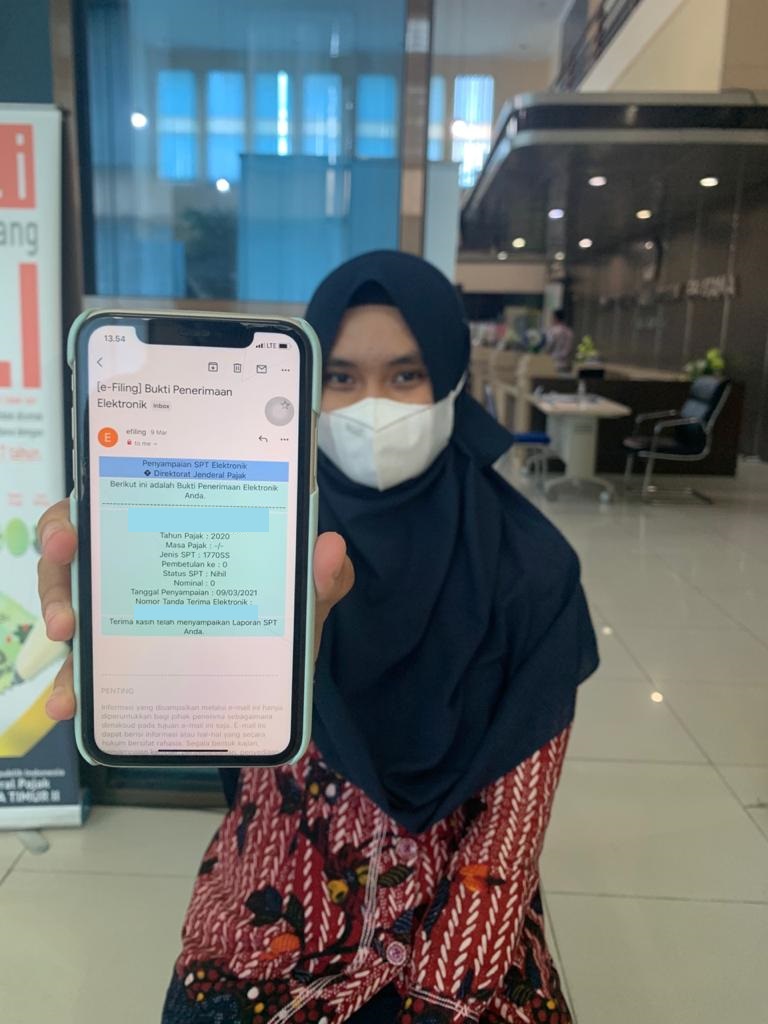 "Lega, akhirnya saya berhasil lapor SPT Tahunan," ujar salah satu wajib pajak yang menggunakan Aplikasi Kunjung Pajak untuk konsultasi.