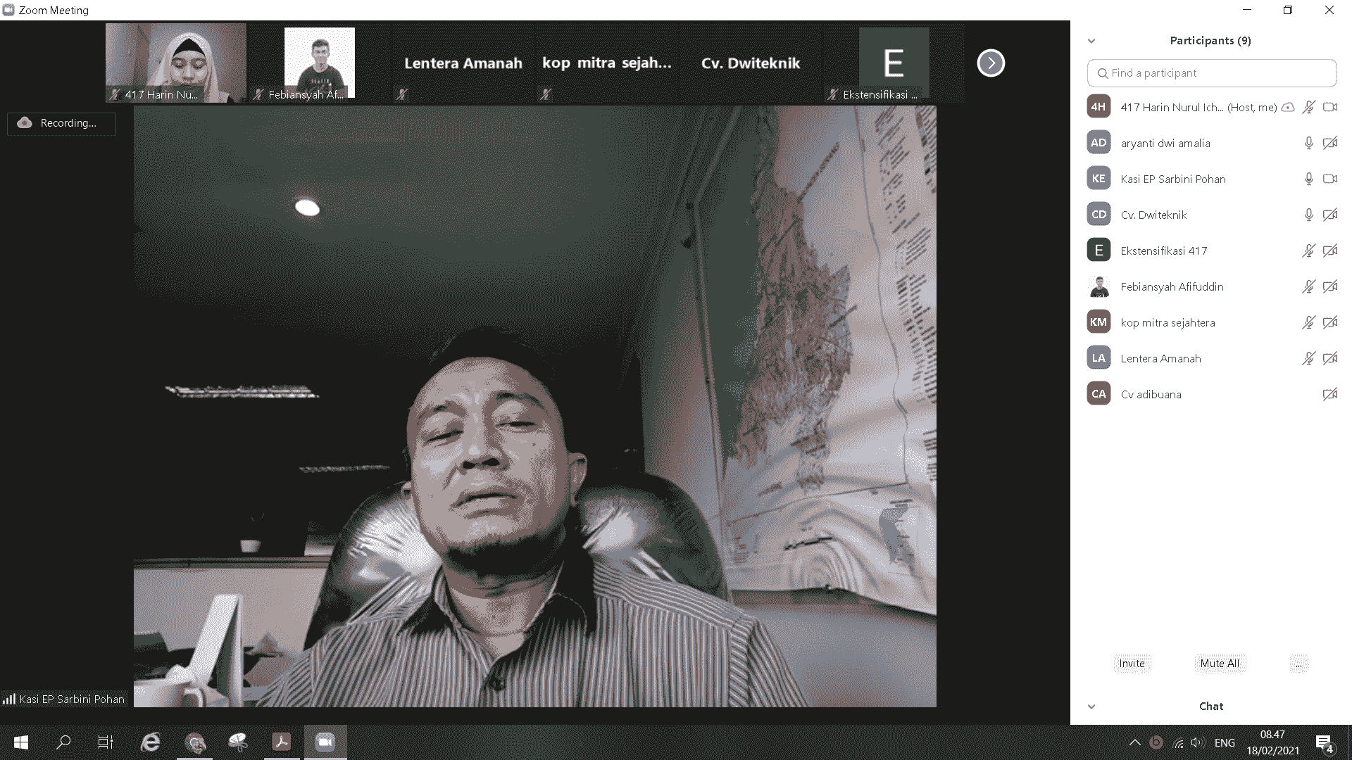Dengan media aplikasi Zoom Cloud Meeting, petugas pajak memberikan pengetahuan mengenai aplikasi e-faktur 3.0 bagi masyarakat umum, khususnya Wajib Pajak Badan yang baru terdaftar dan belum mengerti bagaimana cara pembuatan faktur dan SPT Masa PPN.