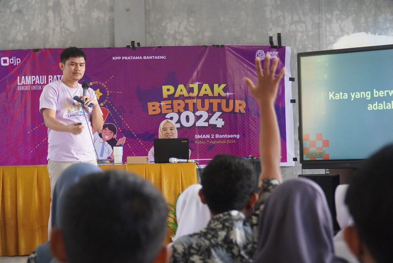 Kantor Pelayanan Pajak (KPP) Pratama Bantaeng kembali menggelar kegiatan Pajak Bertutur (Rabu, 7/8). Bekerja sama dengan SMA Negeri 2 Bantaeng, kegiatan Pajak Bertutur tersebut diikuti oleh 31 siswa-siswi di Ruang Aula SMA Negeri 2 Bantaeng.