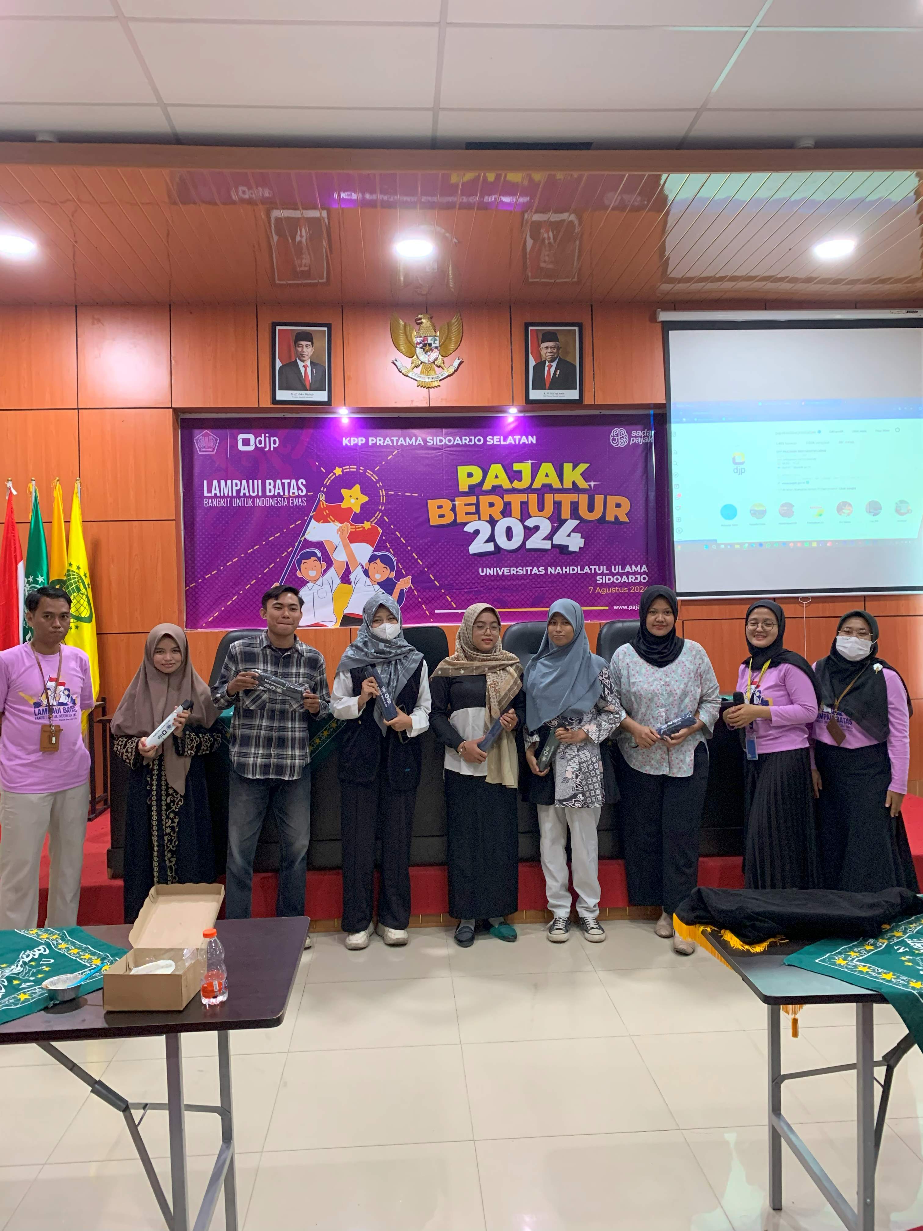 Kantor Pelayanan Pajak (KPP) Pratama Sidoarjo Selatan mengadakan kegiatan Pajak Bertutur ke Universitas Nadhatul Ulama Sidoarjo (UNUSIDA) di Rangkah Kidul, Kecamatan Sidoarjo, Kabupaten Sidoarjo (Rabu, 7/8).