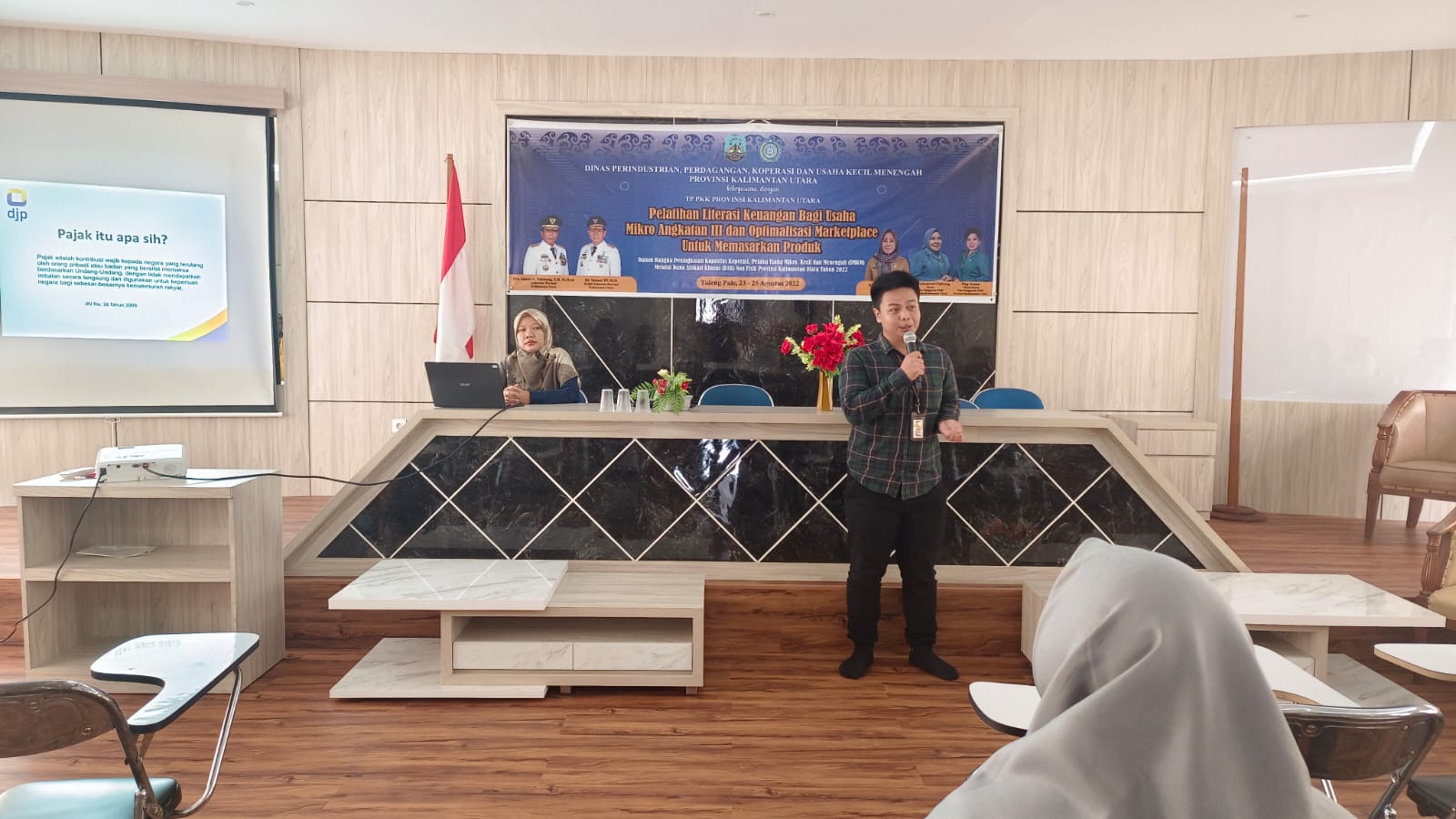 Kantor Pelayanan Pajak (KPP) Pratama Tanjung Redeb menjadi narasumber dalam acara pelatihan yang diselenggarakan oleh Dinas Perindustrian, Perdagangan, Koperasi, dan Usaha Kecil Menengah (Disperindagkop) Provinsi Kalimantan Utara bagi Masyarakat Usaha Mikro Daerah Tana Tidung di Aula Hotel Acacia Kabupaten Tana Tidung (Kamis, 25/8).