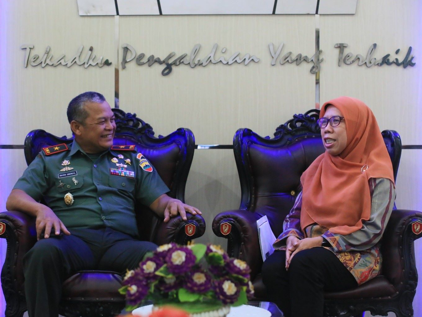 Kepala Kantor Wilayah Direktorat Jenderal Pajak (Kanwil DJP) Sumatera Barat dan Jambi Etty Rachmiyanthi melakukan kunjungan kerja guna menjalin silaturahmi sekaligus memperkenalkan diri kepada Brigadir Jenderal TNI Rayen Obersyl di Kantor Komando Resor Militer 032/Wirabraja di Jalan Sudirman No.29 Padang (Kamis, 30/3).