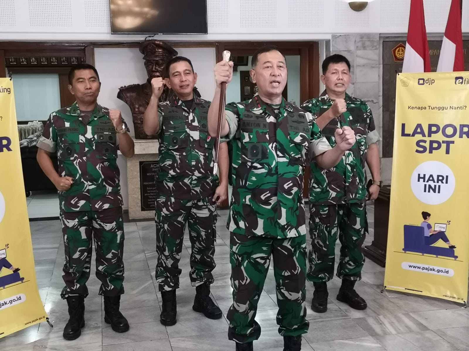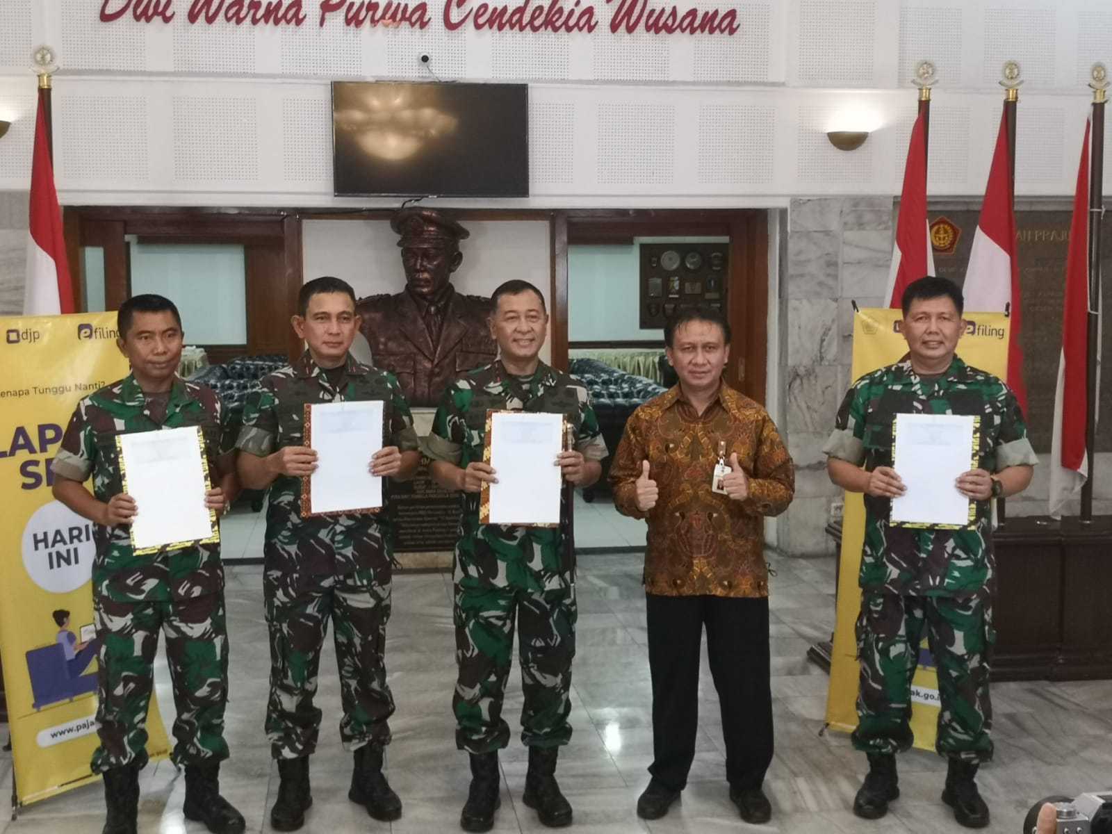 Komandan Seskoad Markas Besar TNI Angkatan Darat (Danseskoad) Mayor Jenderal (Mayjen) Anton Nugroho beserta jajarannya melakukan pelaporan SPT Tahunannya secara melalui e-filing didampingi Kepala KPP Pratama Bandung Tegallega Djunet Santoso dan tim, di Jalan Gatot Subroto No 96, Kota Bandung (Selasa, 1/3).