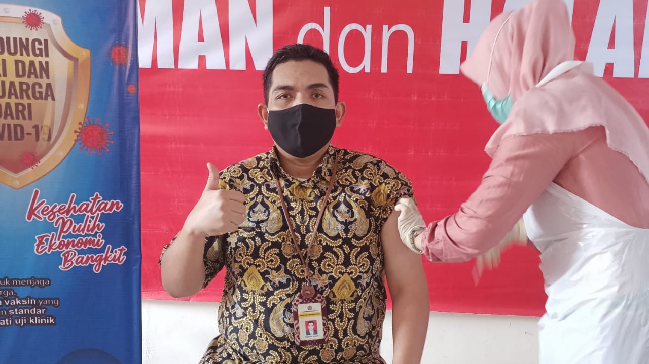 Seluruh Pegawai Kantor Pelayanan Penyuluhan dan Konsultasi Perpajakan (KP2KP) Pelaihari menjalani kegiatan vaksinasi dalam rangka pencegahan penyebaran Covid-19 di Puskesmas Angsau, Kabupaten Tanah Laut, Kalimantan Selatan (Kamis, 25/3).