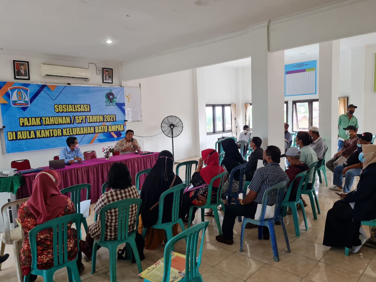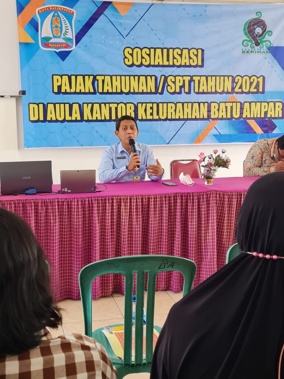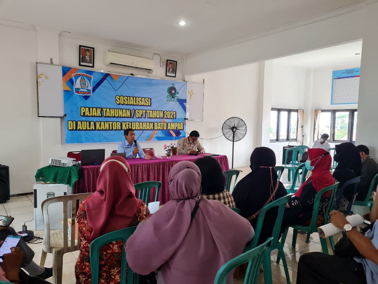 Fungsional Penyuluh Pajak Kantor Wilayah DJP Kalimantan Timur dan Utara dan Relawan Pajak STMIK Borneo Internasional Balikpapan memberikan edukasi hak dan kewajiban Wajib Pajak Orang Pribadi kepada lima puluh Ketua RT di Kelurahan Batu Ampar Kota Balikpapan (Rabu, 30/03). Kegiatan dilaksanakan secara luring di Aula Kelurahan Batu Ampar Kota Balikpapan.