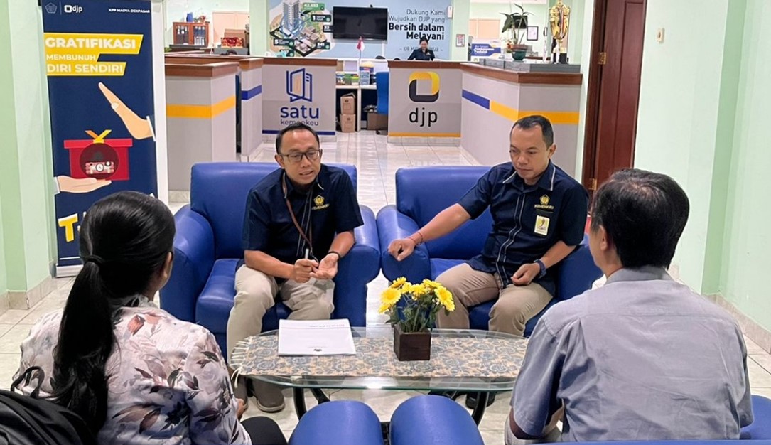 Menindaklanjuti adanya permintaan keterangan, Wajib Pajak (WP) yang mempunyai usaha perancangan lanskap mengunjungi Kantor Pelayanan Pajak (KPP) Madya Denpasar. Kunjungan tersebut ditemui oleh Kepala Seksi Pengawasan IV dan Account Representative (AR) terkait. Diskusi pembahasan dilakukan di ruang konsultasi KPP Madya Denpasar (Rabu, 21/2).