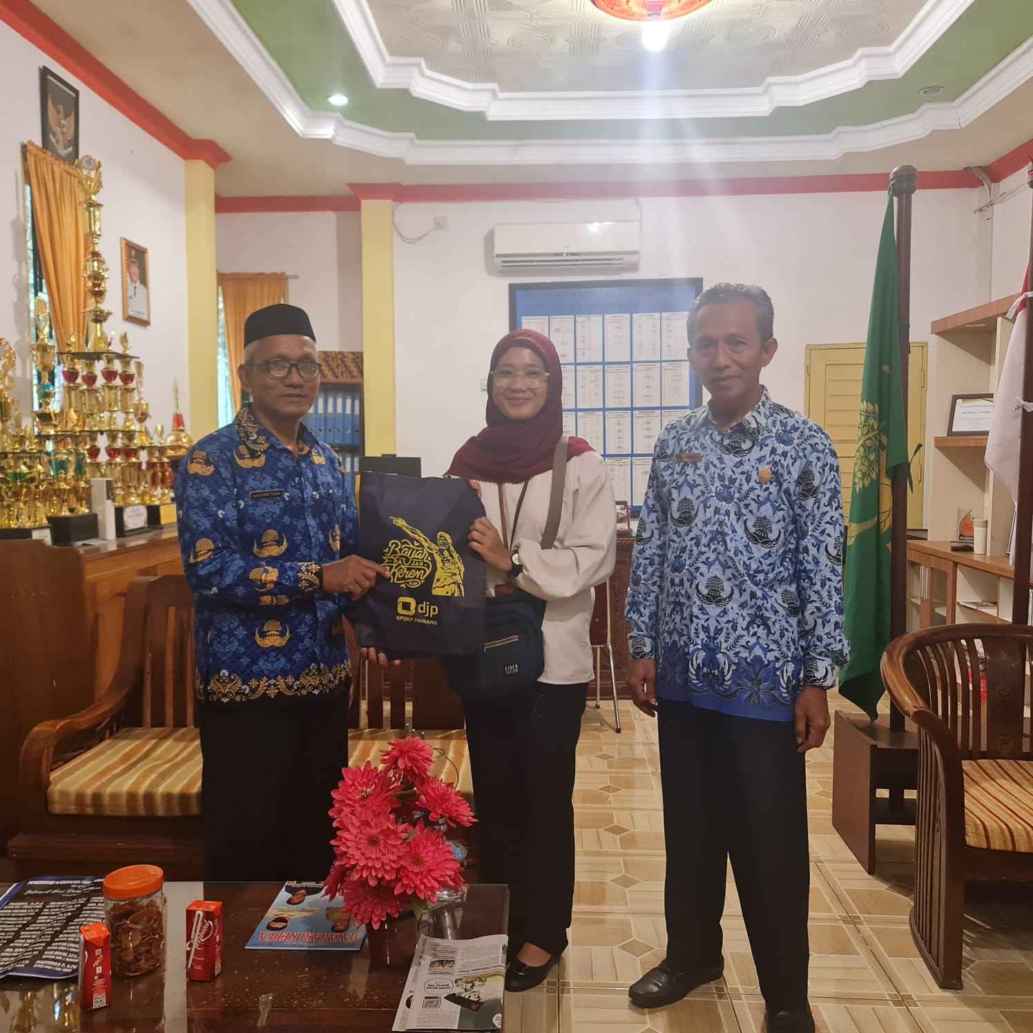 Aisyah, pegawai KP2KP Pinrang, bertemu dengan Latuwo, Kepala SMKN 1 Pinrang di ruangan kepala sekolah. Aisyah menyampaikan maksud dan tujuan kunjungannya kepada Latuwo. “Kegiatan Pajak Bertutur ini merupakan agenda rutin Direktorat Jendral Pajak (DJP) yang bertujuan untuk meningkatkan kesadaran pajak kepada dunia pendidikan pada sekolah tingkat dasar hingga perguruan tinggi. Patur diadakan serentak di seluruh Indonesia sebagai bentuk untuk memperingati Hari Pajak Nasional,” jelas Aisyah.