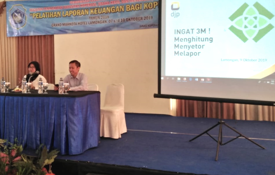 Koperasi Simpan Pinjam di Kabupaten Lamongan mendapatkan sosialisasi kewajiban perpajakan di Hotel Grand Mahkota, Lamongan (Rabu, 9/10). Sebanyak 50 Koperasi Simpan Pinjam menghadiri acara yang dilaksanakan selama tiga hari.