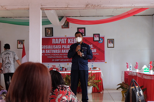 Kantor Pelayanan Penyuluhan dan Konsultasi Perpajakan (KP2KP) Amurang mengadakan kegiatan sosialisasi pelaporan Surat Pemberitahuan (SPT) Tahunan Pajak Penghasilan (PPh) Wajib Pajak Orang Pribadi bagi Aparatur Sipil Negara (ASN) bertempat di Aula Sekolah Menengah Pertama (SMP) Negeri 1 Maesaan, Kabupaten Minahasa Selatan (Kamis, 17/3).