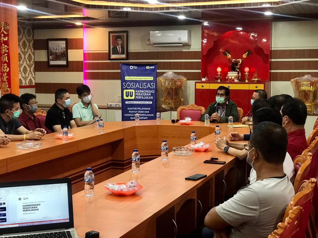 Kantor Pelayanan Penyuluhan dan Konsultasi Perpajakan (KP2KP) Bagansiapiapi memberikan sosialisasi terkait Undang Undang Harmonisasi Peraturan Perpajakan (UU HPP) kepada Yayasan Multi Marga Tionghoa Indonesia Bagansiapiapi di Kantor Yayasan Multi Marga Tionghoa Bagansiapiapi (Jumat, 10/12).