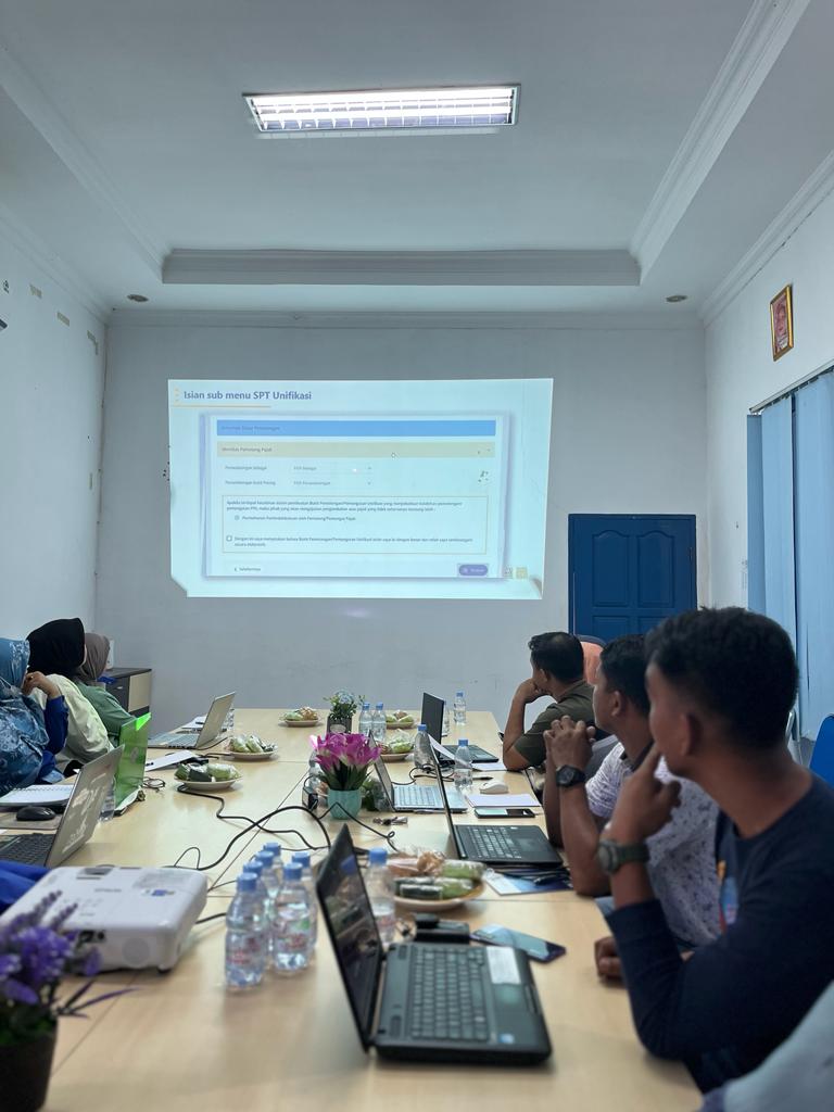 Kantor Pelayanan, Penyuluhan, dan Konsultasi Perpajakan (KP2KP) Banawa melakukan kegiatan bimbingan teknis terkait dengan pembuatan bukti potong secara elektronik bagi bendahara instansi pemerintah dan tata cara pelaporan Surat Pemberitahuan (SPT) Masa Gelombang Pertama di Ruang Aula KP2KP Banawa, Donggala, Sulawesi Tengah (Jumat, 15/9).