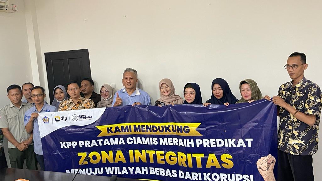 Kegiatan diakhiri dengan foto bersama dengan memegang spanduk ZI-WBK (Zona Integritas Wilayah Bebas Korupsi) dalam rangka mendukung program ZI-WBK KPP Pratama Ciamis tahun 2023.